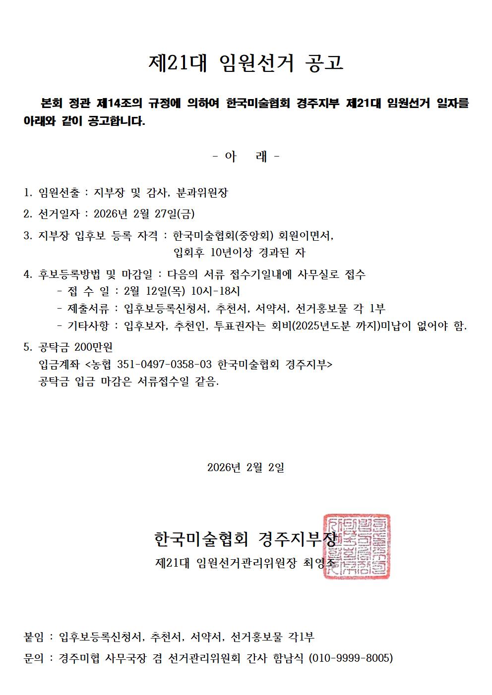Á¦21´ë °æÁֹ̼úÇùȸ ÀÓ¿ø¼±°Å °ø°í