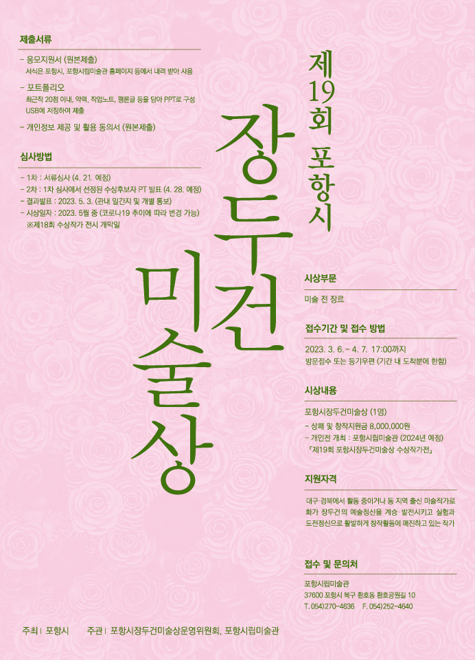 ¡á Á¢ ¼ö ó: (37600) °æ»óºÏµµ Æ÷Ç׽à ºÏ±¸ ȯȣ°ø¿ø±æ10, Æ÷Ç׽ø³¹Ì¼ú°ü ¡®Æ÷Ç׽à ÀåµÎ°Ç¹Ì¼ú»ó ¿î¿µÀ§¿øÈ¸¡¯