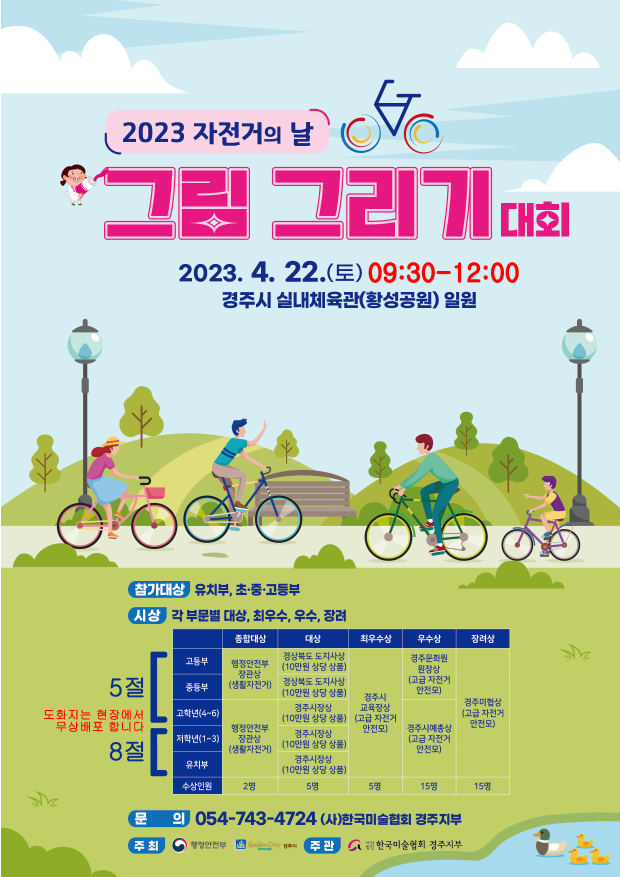 2023ÀÚÀü°ÅÀdz¯ ±â³ä ±×¸²±×¸®±â ´ëȸ°¡ 4¿ù 22ÀÏ(Åä) ¿ÀÀü 9½ÃºÎÅÍ 12½Ã±îÁö ¿¸³´Ï´Ù. ´çÀÏ½É»ç ¹× ½Ã»ó±îÁö ÀÌ·ç¾îÁö¹Ç·Î ¸¹Àº Âü¿© ¹Ù¶ø´Ï´Ù.