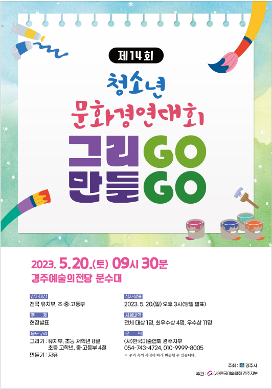 Á¦14ȸ û¼Ò³â°æ¿¬´ëȸ-¹Ì¼ú´ëȸ°¡ °³ÃÖ µË´Ï´Ù. À̹ÌÁö ÆÄÀÏ Âü°í ÇϽðí, ¹èÆ÷µÈ È«º¸Àü´ÜÁö¿¡ 20ÀÏ(ÀÏ)À̶ó°í À߸ø ÀμâµÈ ºÎºÐÀÌ ÀÖ½À´Ï´Ù. 20ÀÏ(Åä)ÀÌ ¸ÂÀ¸´Ï Âø¿À ¾øÀ¸½Ã±â ¹Ù¶ø´Ï´Ù.