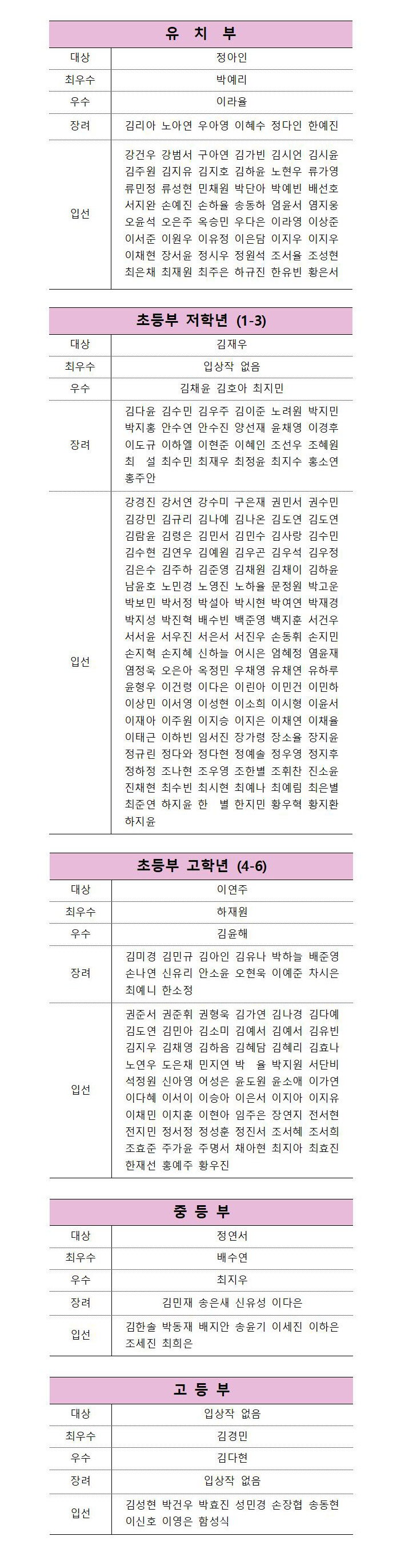 2021. 11. 05.18:00 À¯Ä¡ºÎ ÀÔ¼± ÇлýÁß¿¡¼ ±èÁÖ¿ø -> ±èÁÖÀº, ±èÁöÈ£ -> ±èÁöÈ¿, ¾öÀ±¼ -> ¿°À±¼ Á¤Á¤ ÇÕ´Ï´Ù.