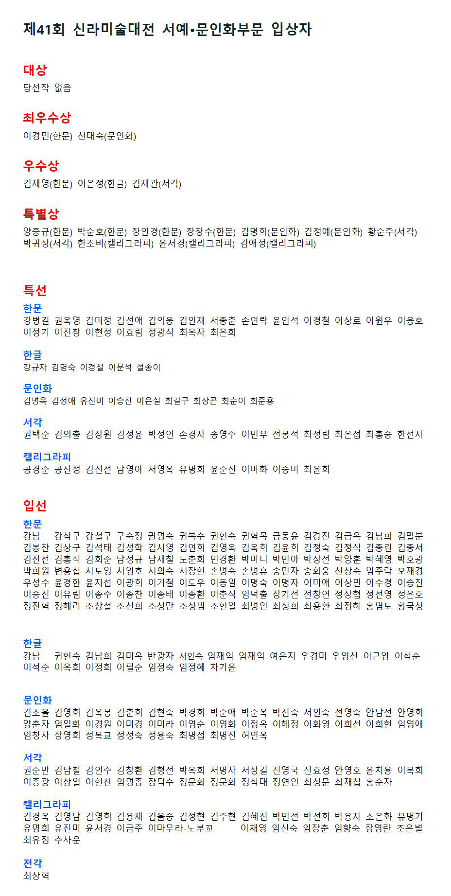 2020 Á¦41ȸ ½Å¶ó¹Ì¼ú´ëÀü ¼¿¹,¹®ÀÎÈ ºÎ¹®¿¡ ÀÀ¸ðÇÏ¿© Áּż °¨»ç ÇÕ´Ï´Ù.