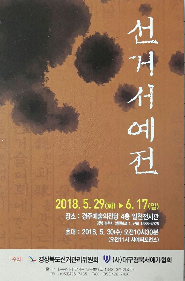 2018.5.29(È)~ 6.17(ÀÏ)±îÁö °æÁÖ¿¹¼úÀÇ Àü´ç 4Ãþ °¶·¯¸® ÇØ(´ëÀü½Ã½Ç) ÃÊ´ë: 5.30¼ö) ¿ÀÀü 10:30 ¼¿¹ÆÛÆ÷¸Õ½º ÁÖÃÖ °æ»óºÏµµ ¼±°Å°ü¸®À§¿øÈ¸ (»ç)´ë±¸°æºÏ¼¿¹°¡Çùȸ