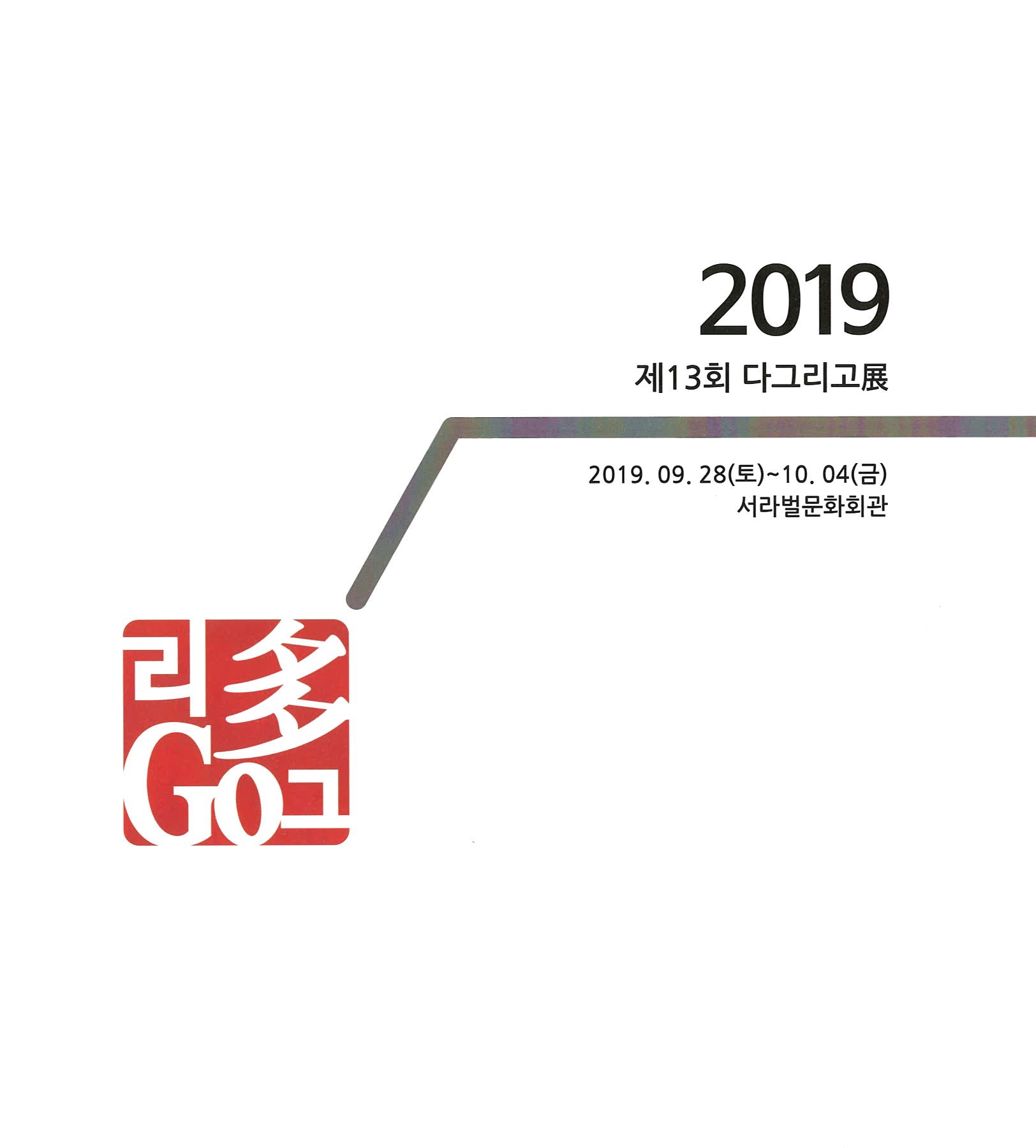 2019 Á¦13ȸ ´Ù±×¸®°íî÷ Àü½Ã±â°£ : 2019. 09. 28(Åä) - 10. 04(±Ý) Àü½ÃÀå¼Ò : ¼¶ó¹ú¹®Èȸ°ü opening : 2019. 09. 28(Åä) ¿ÀÈÄ4½Ã